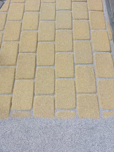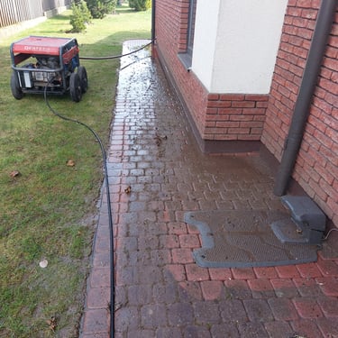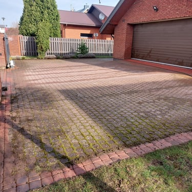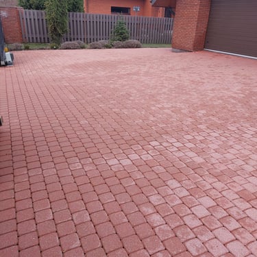 Profesionalus trinkelių plovimas - valymas, paviršių atnaujinimas: Atnaujiname trinkeles, fasadus ir stogus pašalindami giliausius nešvarumus.