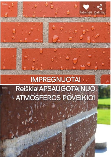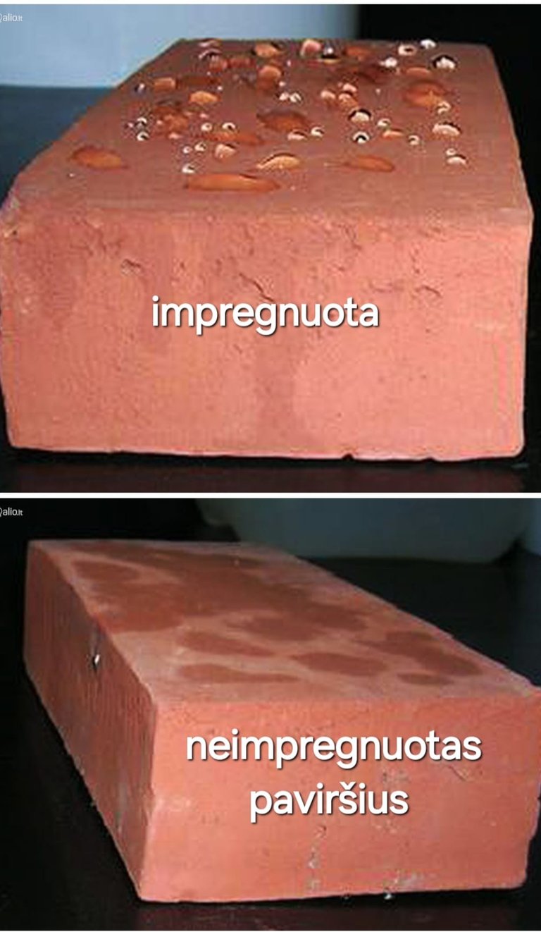 Čia padeda impregnuojanti apsauginė danga – Statybinė (ės) medžiaga (os) mirkoma apsauginiu skysčiu visame paviršiaus plote.